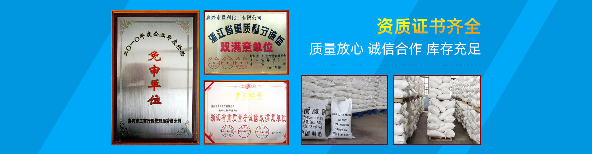嘉興市昌利化工有限公司——位于中國浙江省嘉興市,主要銷售六偏磷酸鈉、磷酸三鈉、磷酸氫二鈉、磷酸二氫鈉、三聚磷酸鈉、醋酸鈉,還有葡萄糖酸鈉、甲酸鈣、檸檬酸等各類無機(jī)化工、有機(jī)化工原料。我們的主要銷售對象是印染廠,紡織廠,造紙廠,熱電廠,電鍍廠,混凝土外加劑廠,污水處理廠等。我們公司在江蘇和浙江都有很高的聲譽(yù),現(xiàn)公司因業(yè)務(wù)需要在浙江省嘉興市和江蘇省蘇州市都設(shè)有銷售點,方便更多客商采購。本公司實力雄厚,重合同、守信用、保證產(chǎn)品質(zhì)量,以多品種經(jīng)營特色和薄利多銷為原則。